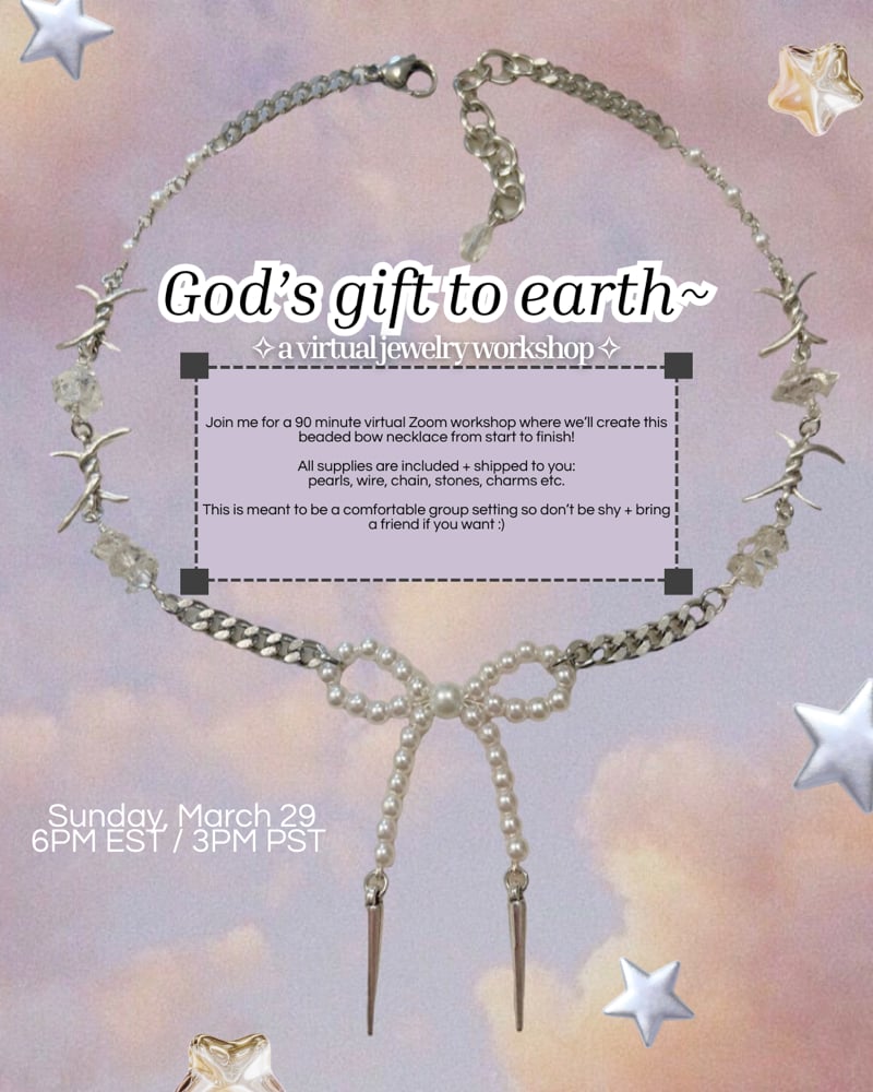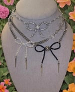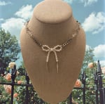 In this workshop, you’ll learn how to create a structured beaded bow pendant using pearls & wire, finished with metal spike drops & hung on a handmade collar of chain, charms + stones.